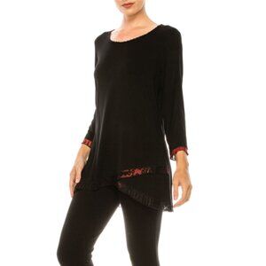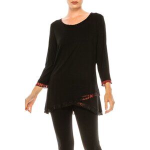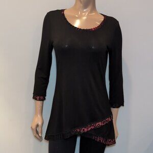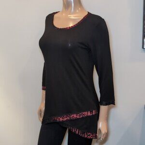Peter Nygård Tunic Top 3/4 Sleeve Faux Layer Wrap Hem Scoop Neck