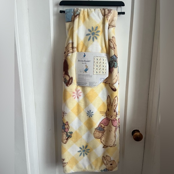 🐇 🐣 Soft blanket featuring Peter Rabbit design with yellow gingham and floral patterns.
