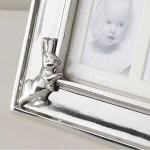 silver frame. With spaces for twelve small photos and one large photo, this glossy piece features Beatrix Potter™-inspired details for a whimsical touch