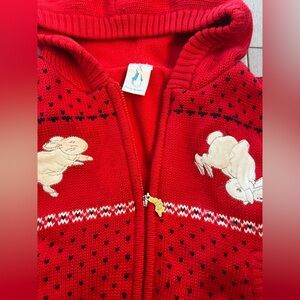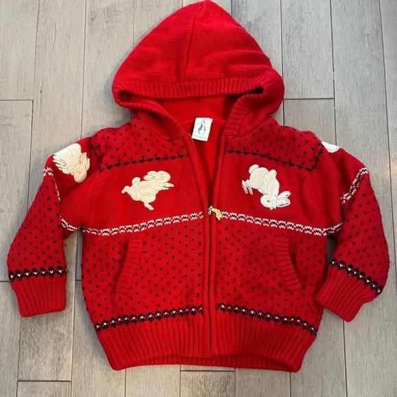 This delightful red hoodie features a playful bunny design, perfect for adding a touch of fun to your child's wardrobe. Crafted for comfort and style.