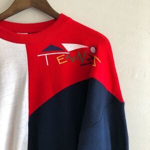 Peter vintage style Tennis cozy comfy pullover crewneck long sleeve sweater sweatshirt shirt top with colour block detail. Red white and blue in colour. 100% acrylic. Size XL / extra large. Great pre loved condition / EUC. Approx measurements armpit to armpit: 22“ length 26.5” sleeve: 29“ Offers welcome. Ships in 1-2 business days.