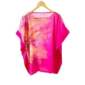 Peter Nygard NWT Fuchsia Abstract Floral Print Kimono Short Sleeve Blouse