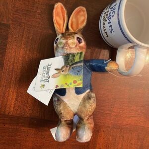 Peter Rabbit Ceramic Mug and Plush Stuffed Animal Toy NEW