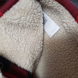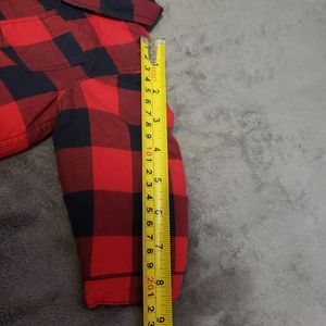 Made from soft and warm cotton and entirely lined with warm and soft fleece. Red and black check pattern. Collar, chest pocket and snaps on the front and cuffs. A lovely shirt to pair with jeans. In an excellent pre loved condition. Approximate measurements are in the pictures taken laid flat.