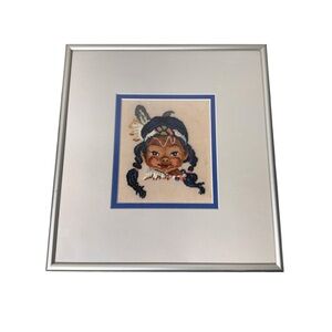 Petit Point Framed Wall Art, Native American Girl, Needlepoint