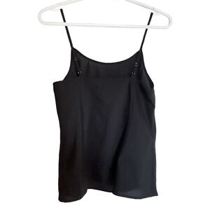 Soft and versatile black camisole with adjustable straps. Petite fit (size Small/Petite) with a smooth lightweight feel, lined for extra comfort. Perfect for layering under blazers, cardigans, or wearing on its own for a minimalist look. Excellent condition.
