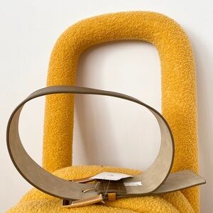 Buckle closure. Gold-tone hardware. Measures approx 2.25" / 6 cm H.Buckle measures approx 2.5" / 6 cm W x 3.5" / 9 cm H