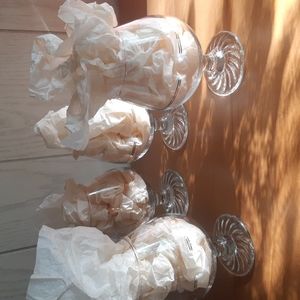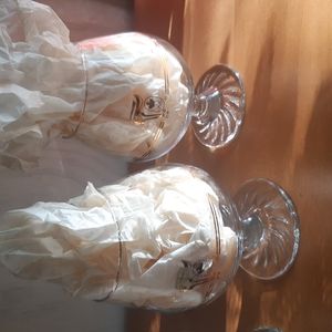 Each glass has the Olympic Torch and the logo etched in gold ( I believe 22K Gold )