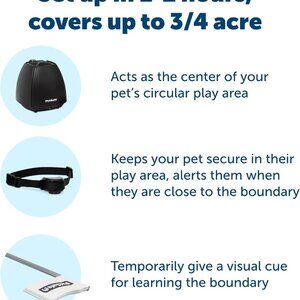 ✅ 3/4 acre of circular coverage: sets up in just 1-2 hours and creates a circular boundary that covers up to a 3/4-acre yard (22-105 ft in all directions) from the placement of the indoor transmitter