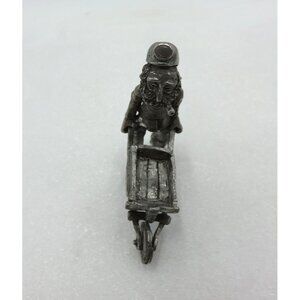 Pewter Coal Miner Miniature Figurine With Wheelbarrow England Signed Vintage