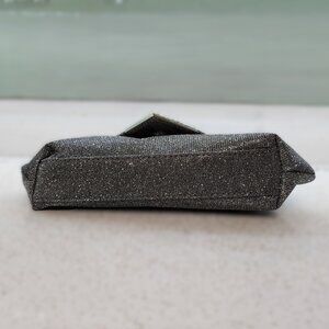 BeautyControl Evening Clutch in a pewter sparkle colour. No straps or pockets. 10 inches base by 4 inches deep aprox. 12 inches wide at widest point aprox. Very good unused condition, however one small scuff on edge from storage, please see photo illustration.