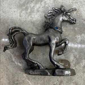 Pewter Unicorn with chrystal ball Figurine 2”x2”