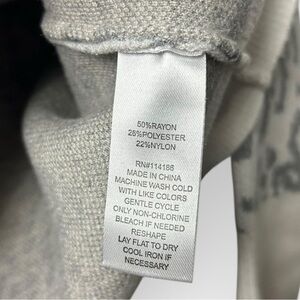 Stay cozy and stylish with this elegant gray and cream sweater. Perfect for any occasion, this sweater offers both comfort and fashion.