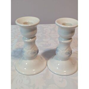 Pfaltzgraff Memories Blue Rose Glossy Finish Stoneware Candle Sticks Set Of 2