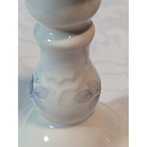 Two Pfaltzgraff Memories, Blue Rose candlestick holders featuring delicate blue roses with a glossy finish.