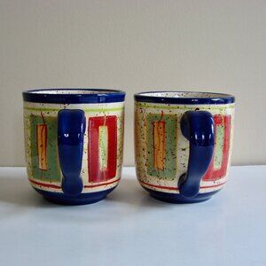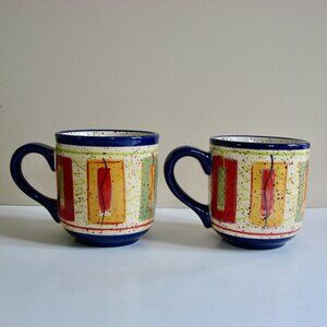 Pfaltzgraff Set of 2 Coffee Mugs Sedona Colourful Oversized Large Tea ~ Hand Painted ~ Dishwasher & Microwave Safe