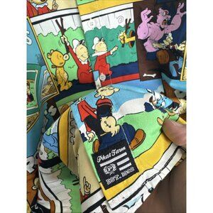 Phat Farm × Popeye comic-panel short-sleeve shirt in bold, bright all-over graphics. Button front, classic collar, lightweight polyester. Tagged M, fits true. No holes or stains noted. Killer retro cartoon aesthetic.