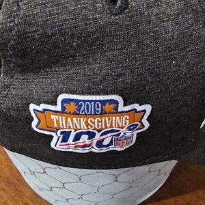 Philadelphia Eagles Hat Eagles emblem on front Hat color grey Crest from 2019 thanksgiving 100th Hat made by New Era NFL Crest on inside and on back on rim