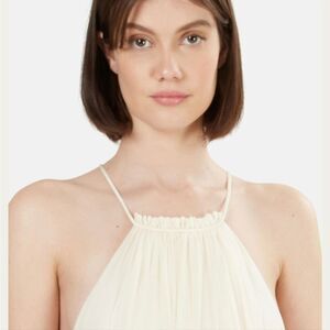 Fully Lined, Raw Gathered Neckline, Spaghetti Straps, Loose Fit XS, fits up to size M (S Best), no brand tag (you can check from the RN# on the material tag), otherwise Excellent Like New Condition, Pit-17, Length-34.