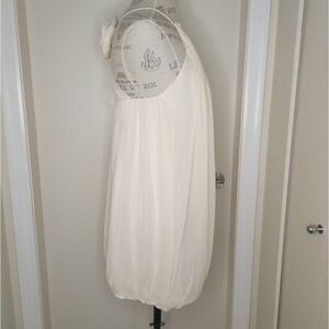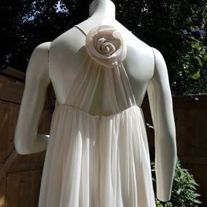 Vintage Antique White 100% Silk Chiffon Draped Halter style Mini Dress with large Floral Rosette detail Vneck Back, by 3.1 Philip Lim.