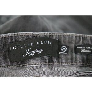 Philipp Plein Women's 25 Charcoal Black Slim Fit Denim Jagging Jeans Mid Rise