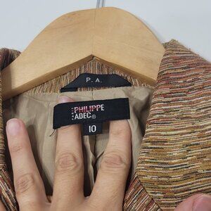 Philippe Adec Brown Orange Cotton Blend Button Front Lightweight Blazer Size 10