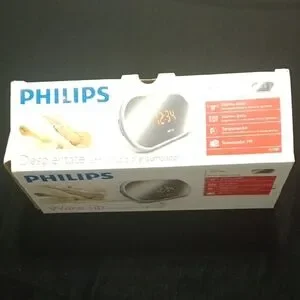 Sleek Philips alarm clock with LED display. Easy-to-use controls.