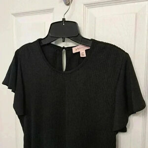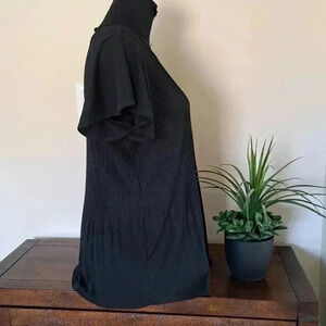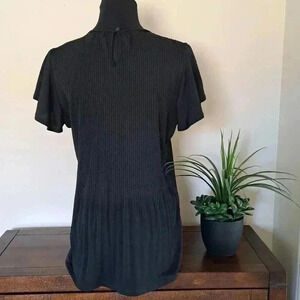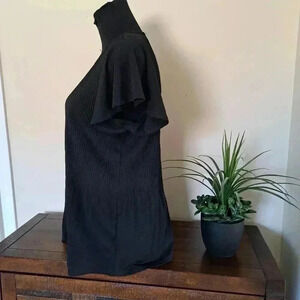 Philosophy Black Pleated Top Medium Lightweight Short Flutter Sleeve