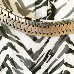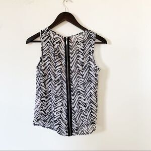 Philosophy Black White Zebra Animal Print Metallic Neck Detail Sleeveles Blouse