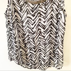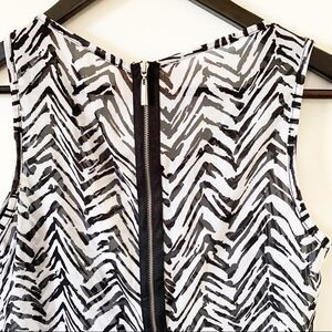 Philosophy Black White Zebra Animal Print Metallic Neck Detail Sleeveless Blouse