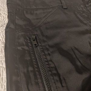 Fun going out, clubbing pants; shiny (but not too shiny), not back pockets, cute zipper side pockets. Great condition (no fraying).