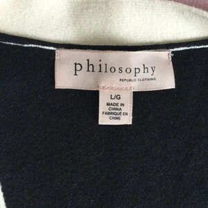 Philosophy - Republic Clothing - oversized cardigan, padded shoulder, tipped trim, and novelty button pocket cardigan.