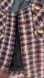 Red, black, white and green yarns woven together in a herringbone pattern create visual interest and stripe effect on this chunky sweater. Gold color textured buttons and snaps, two front patch pockets.. The extended sleeve and removable front tabs make this a versatile piece that can be worn different ways. The body is lined but the sleeves are not. Some threads are loose along the lower edge (see picture); these could be removed without affecting the wearability. Made in Hungary. 92% Virgin Wool, 6% Polyester, 2% other.