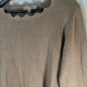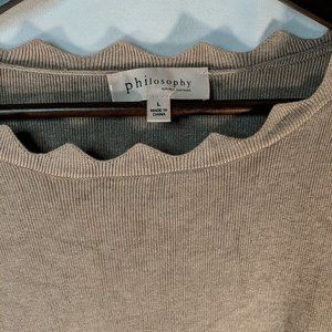 Philosophy Mauve Light Brown Scallop Hem Women's L Knit Sweater Top 3/4 Sleeve