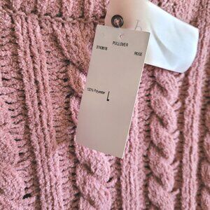 Philosophy Sweater Womens Large Pink Chenille Cable Knit Pullover NEW