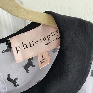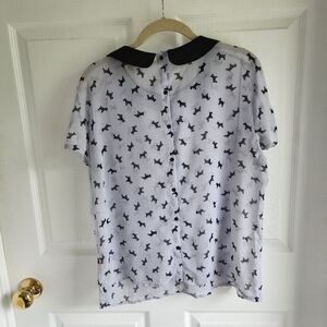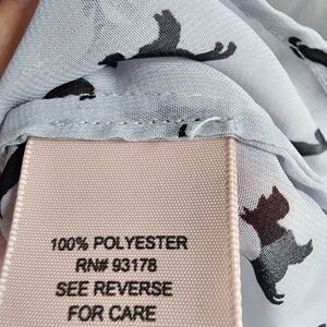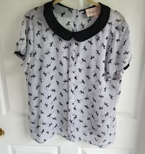 Cute blouse with round collar, sheer fabric, back button up. and cute scottie dog pattern.