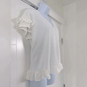 Philosophy/ White flowy tee shirt/Short sleeved/ V-neck/ Viscose blend/Size US S