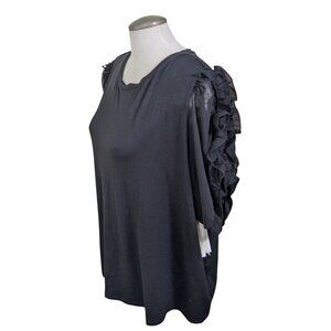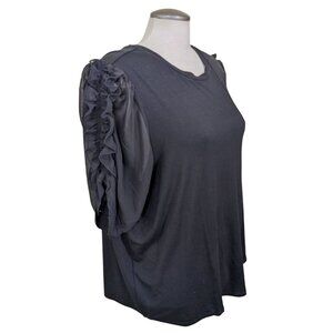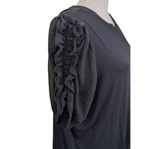 Philosophy Woman NEW Plus 2X Top Blouse Black Ruffle Sheer Short Sleeve Stretch