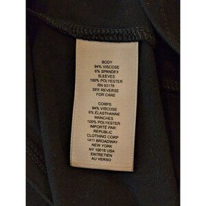 This Philosophy Woman blouse in size 2X features a solid black color with sheer puff sleeves and ruffle accents. It has a pullover closure and a stretchy material blend of spandex and viscose. The short sleeves add a feminine touch, making it suitable for various occasions like travel, parties, work, or casual wear. The blouse has a regular fit and a basic style with a hint of romantic and sexy vibes.