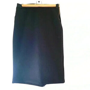 The skirt itself has a fair amount of stretch, the waistband not so much. The waist band measures 31 inches. There is a 7 inch slit at the back, and two pockets in the front. The length of the skirt is 27 inches.