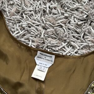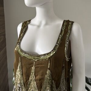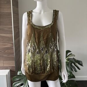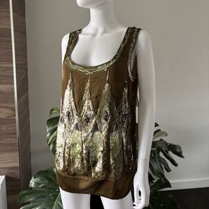 Philosophy di Alberta Ferretti Tank Top 100% Silk Olive Brown Sequin Blouse Sz 10 US