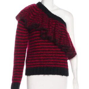 Philosophy di Lorenzo Serafini Red Black Ruffle Striped Mohair Sweater sz Small