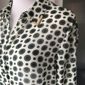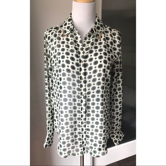 Sheer blouse by Philosophy. Metal tips on collar. Loose fit. Missing two buttons as pictured - reflected in price