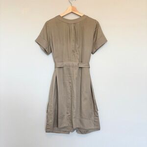 Phoebe Couture Size 8 Safari Shirt Dress Short Sleeve Midi Buttons Khaki Utility