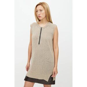 Phoebe Philo CELINE Beige Linen Blend Knit Long Front Zip Tunic Sweater, Size M