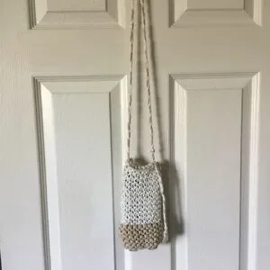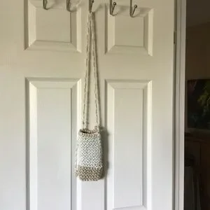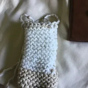 Nearly new handmade crochet phone/glasses shoulder bag. Mark (see pic) at top edge. 7.5h x 4w x 1.4d