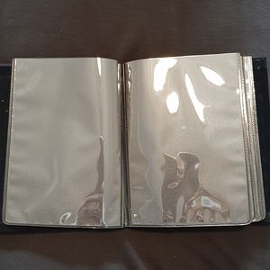 Beautiful silver on front photo album. Holds 36 photos 4 x 6. Black velvet on inside. Never been used. Comes with box. Purchased from Shoppers Drug Mart name on box