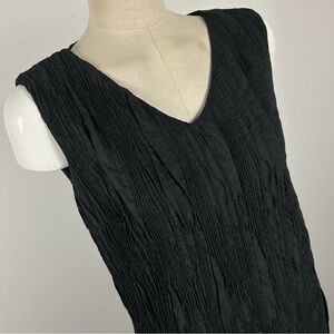 Elegant black midi dress. Sleeveless design. Perfect for any occasion.