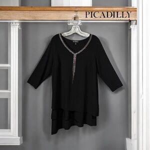 Picadilly, Chic Black Tunic With Rhinestone Detail, Large