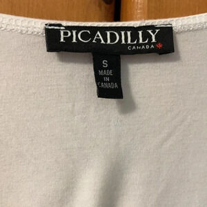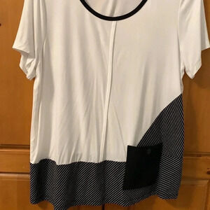 Soft and light tee shirt. Black and white. Good stretch. Size Small. Made in Canada.